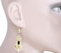 The body of each earring features a geometric filigree design with matte finish accents, set at the center with a dramatic faceted marquise shape natural black onyx gemstone, dangling from a meticulously detailed filigree top, for attractive eye-catching movement. The finished open gallery around the sides of the earrings with light scattering millgrain edging is the perfect finishing touch for these unique 1920's design Art Deco black onyx earrings.