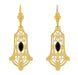 These vintage style Art Deco filigree black onyx earrings are hand crafted in sterling silver and finished in warm 18K yellow gold.