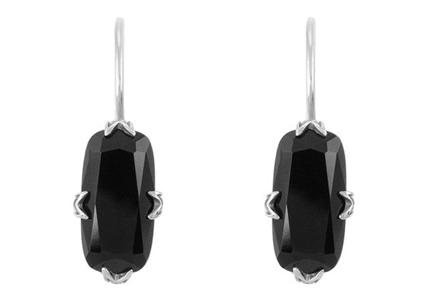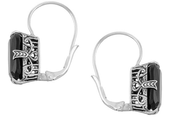 Simple Filigree Cushion Cut Black Onyx Earrings in Sterling Silver - Art Deco