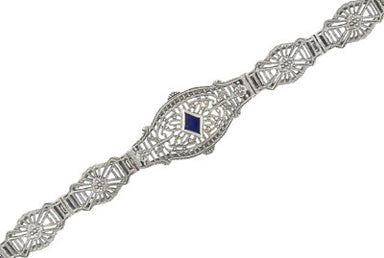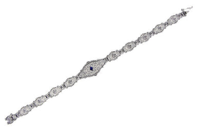 Art Deco Filigree Sapphire Bracelet in 14 Karat White Gold