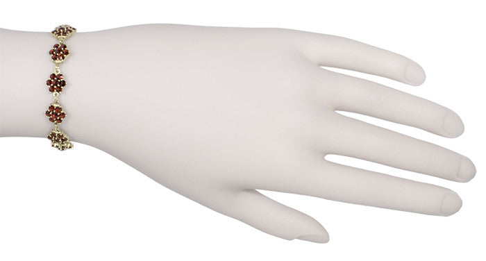 Victorian Flowers Bohemian Garnet Bracelet in Sterling Silver with Yellow Gold Vermeil