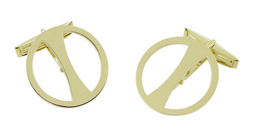 Geometric Mid Century Modern Round Vintage Cufflinks in 18 Karat Yellow Gold