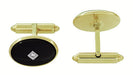 Mid-Century Oval Onyx and Diamond Vintage Cufflinks in 14 Karat Yellow Gold