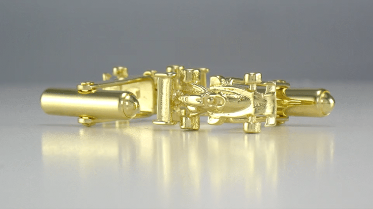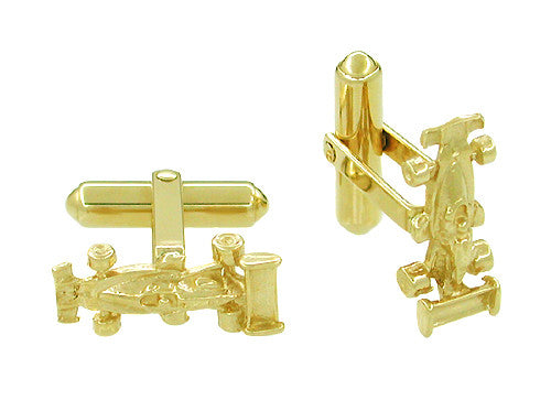 Race Car Cufflinks in 14 Karat Yellow Gold