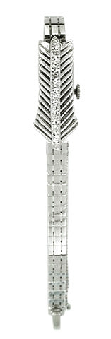 Retro Moderne Ladies Diamond Set Bracelet Watch in 14 Karat White Gold