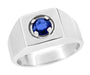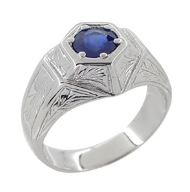 1 Carat Men's Royal Blue Natural Sapphire Ring in 14 Karat White Gold - 1950's Reissue