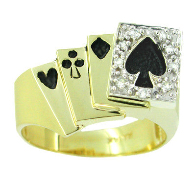 Vintage Men's 4 Aces Diamond Card Player Ring in 14 Karat Yellow Gold