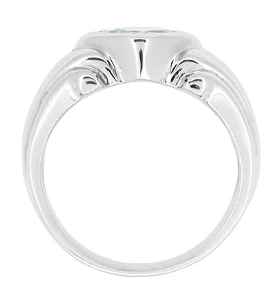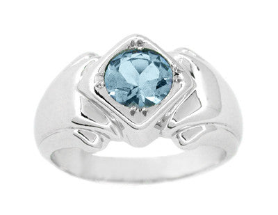 1920's Vintage Style Art Deco Aquamarine Ring for a Man in 14 Karat White Gold