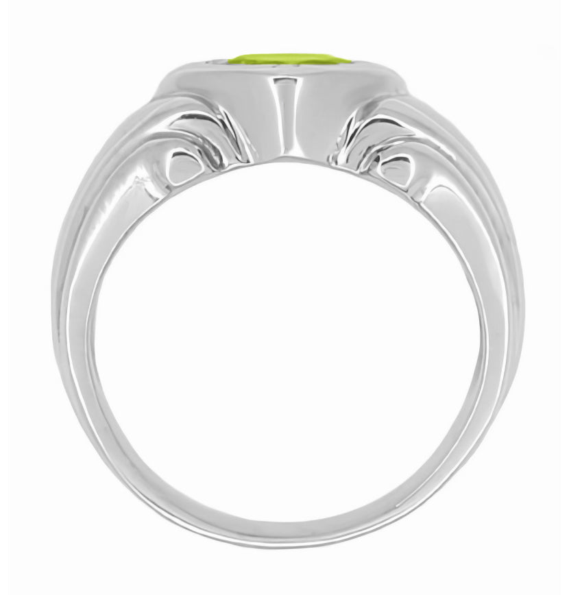 Geometric Art Deco White Gold 1.5 Carat Natural Peridot Ring for a Man