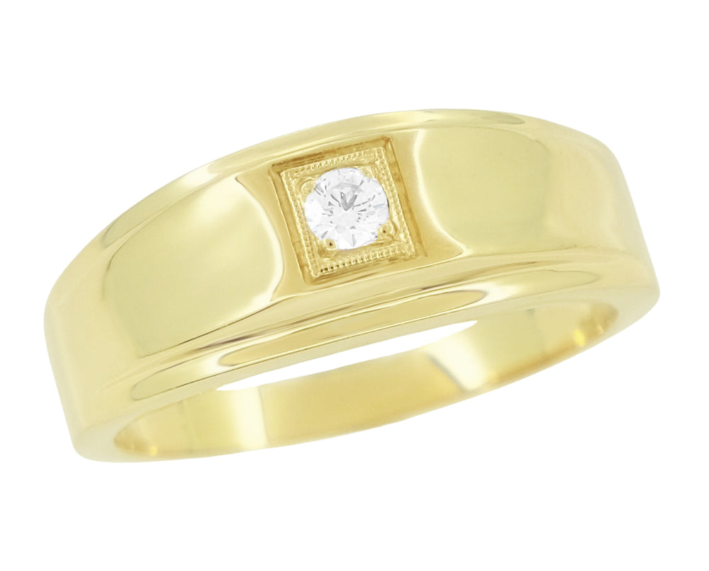 Yellow Gold Men's 1950's Retro Moderne Diamond Ring - Natural or Lab Created Diamond