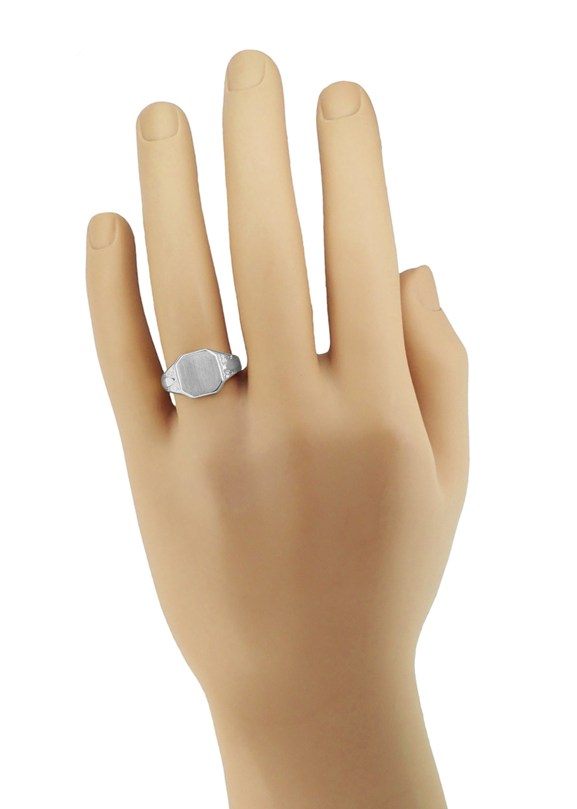 Antique Style Chased Victorian Square Signet Ring in White Gold