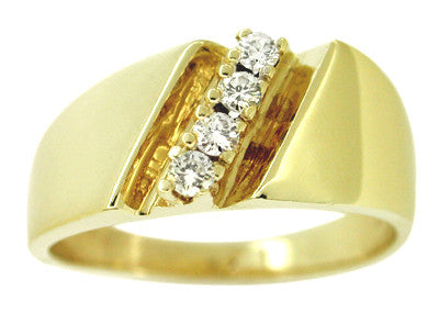 A wearable blast from the past in warm yellow gold, this handsomely fashioned vintage design Mid Century Retro Moderne men's diamond ring makes a c...