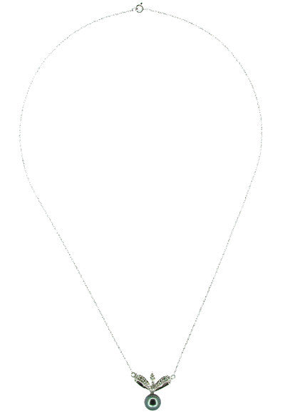 Antique Diamond Set Black Pearl Drop Lavalier Necklace in 14 Karat White Gold
