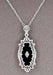 Art Deco Onyx and Diamond Filigree Pendant Necklace in Sterling Silver