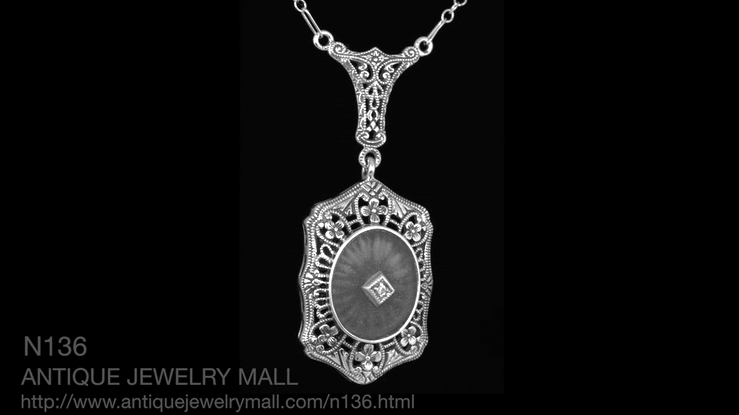 A large elegant scroll floral filigree bail is attached to the classic 18 inch long pendant neckchain to perfectly complete the exquisite effect.