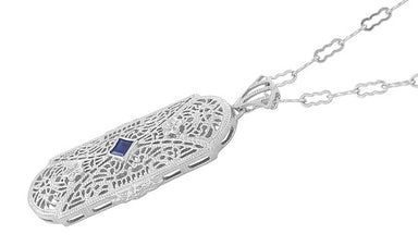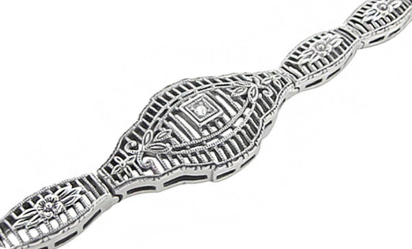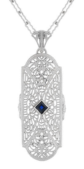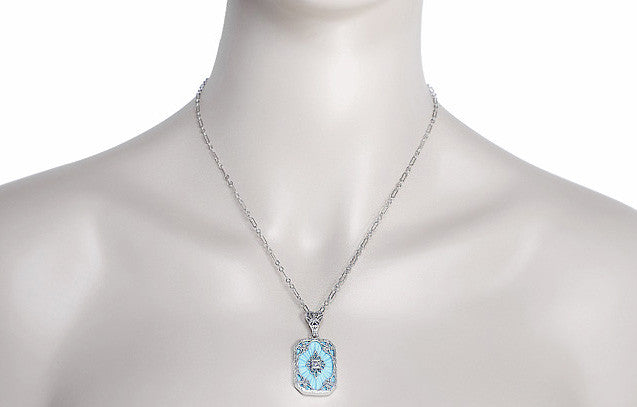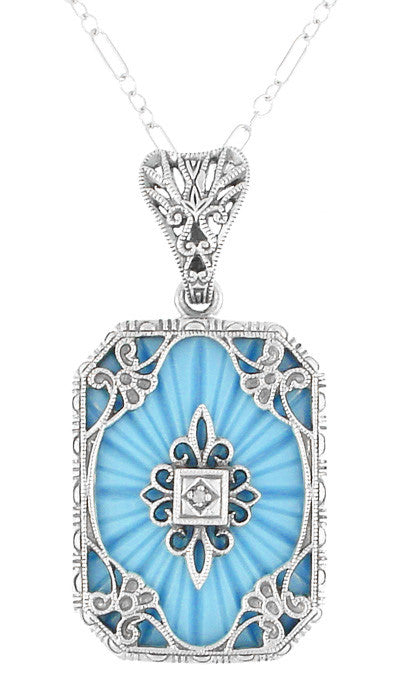 Art Deco Filigree Scrolls Starburst Diamond Set Pendant Necklace in Sterling Silver