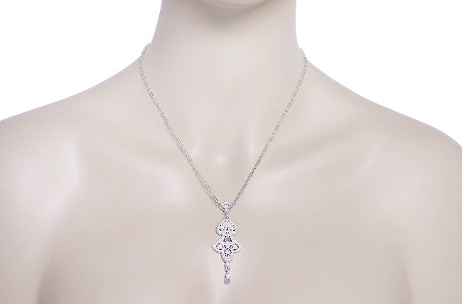 Edwardian Pearl Lavalier Drop Pendant Necklace in 14 Karat White Gold
