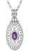 Filigree openwork radiates from the center of the pendant, with a double oval filigree scallop and scroll open work frame surrounding the outer edges. The finished open gallery around the sides of the pendant and the generously sized arrowhead filigree bail complete the exquisite and thoroughly enchanting effect of this gorgeous pendant, with light scattering millgrain edging and beadwork for the perfect finishing touch.