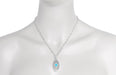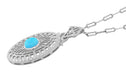 Art Deco Turquoise Filigree Oval Pendant Necklace in Sterling Silver
