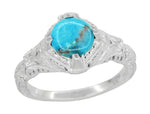 Gracefully elegant, this beautiful Art Deco pendant necklace in solid sterling silver spotlights a natural vibrant blue cabochon turquoise gemstone ( December Birthstone ) of 1.10 carats from the Sleeping Beauty mine in Arizona, USA.
