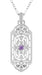 Art Deco Filigree Amethyst Geometric Pendant Necklace in Sterling Silver