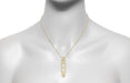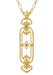 Measuring 2 inches high (including the bail) by 1/2 inch wide, this timeless Art Nouveau yellow gold vermeil emerald pendant includes a coordinating vintage design 18-inch gold vermeil over sterling silver neck chain.
