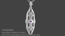 North South 1920's Filigree Amethyst Pendant Necklace in Sterling Silver - Art Deco Antique Inspired