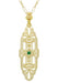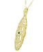Art Deco Filigree Emerald Lozenge Pendant Necklace in Sterling Silver with Yellow Gold Vermeil