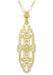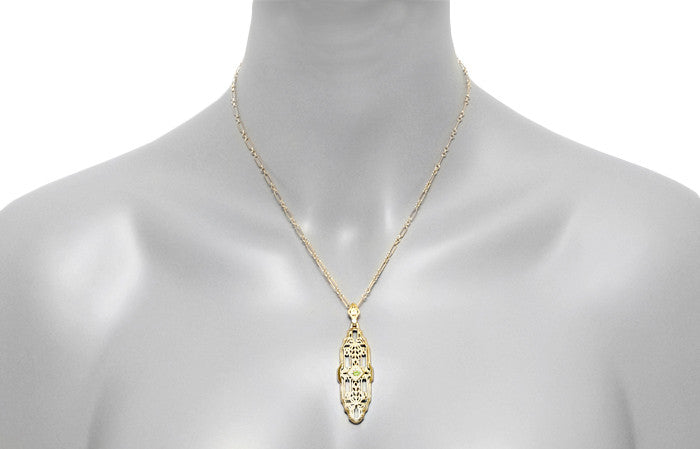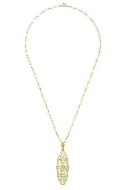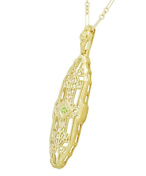 Art Deco Filigree Vintage Inspired Peridot Lozenge Pendant Necklace in Yellow Gold Over Sterling Silver