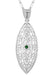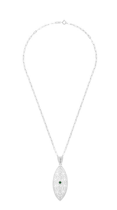 1920's Vintage Style Filigree Emerald Leaf Pendant Necklace in Sterling Silver
