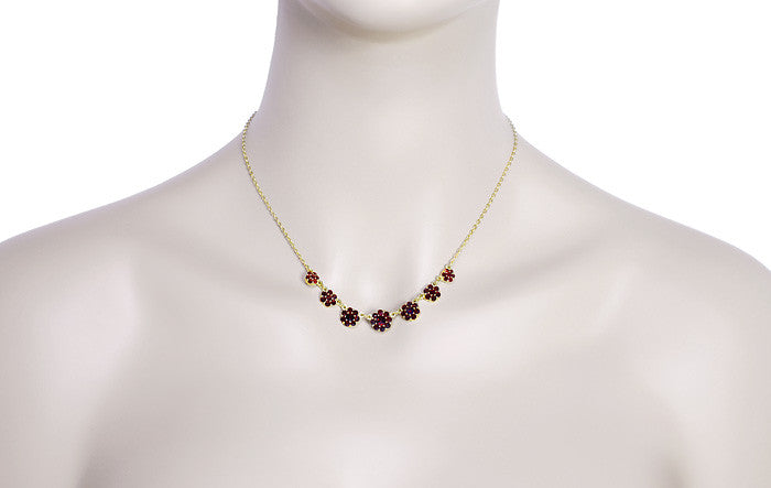 Victorian Flowers Bohemian Garnet Necklace in Yellow Gold Vermeil Over Sterling Silver