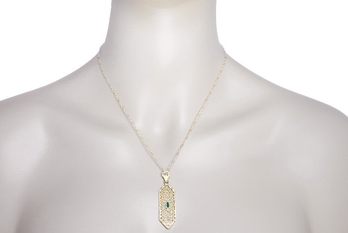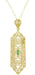 Art Deco Filigree Emerald Lavalier Pendant Necklace in 14 Karat Yellow Gold