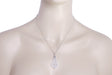 Refined and enchanting in its execution, this exquisite 14K white gold Art Deco pendant necklace features lovely frosted crystal set with a sparkling 0.01 round brilliant cut diamond, securely four prong set in a diamond shaped millgrain edged frame, surrounded by frosted crystal and beautiful meticulously detailed intricate white gold filigree. An ideal gift for someone very special, this vintage style camphor glass lavalier pendant measures 1 3/4 inch high including the bail, by 7/8 inch wide, and comes with a classic 18 inch long 14K white gold neckchain.