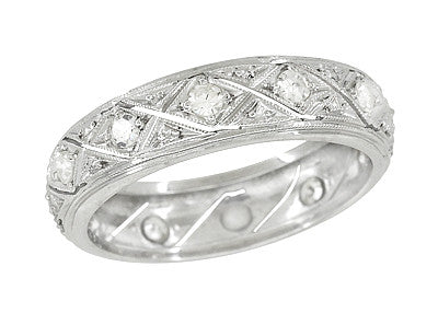 Sachem Antique Art Deco Platinum Diamond Hand Etched Wedding Band