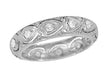 Platinum Art Deco Engraved Filigree Shields Vintage Diamond Wedding Ring - Size 6.75 - 5mm Wide