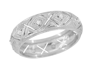 Oakville is a wide 1920's Art Deco platinum vintage eternity wedding ring, which features a unique repeating diamonds engraved geometric design. Mi...