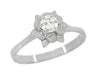 Buttercup Flower Antique Diamond Engagement Ring in 18 Karat White Gold