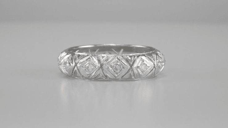 Hancock Art Deco Filigree Vintage Diamond Wedding Band in Platinum - Size 6 1/2