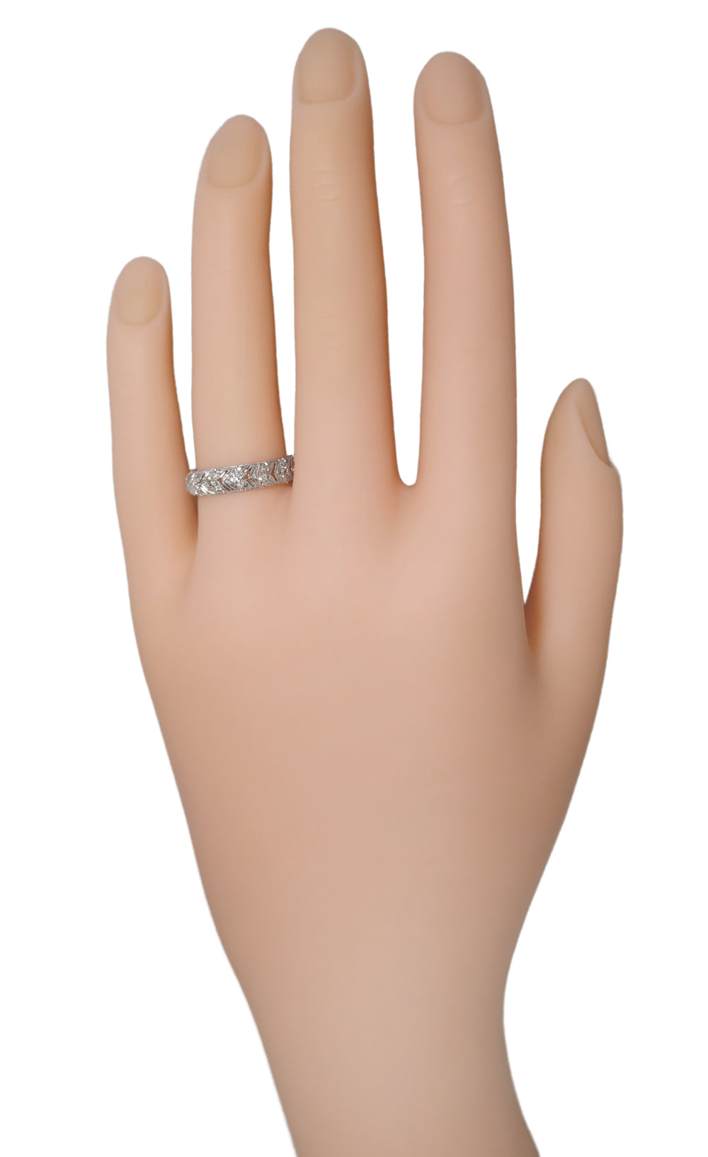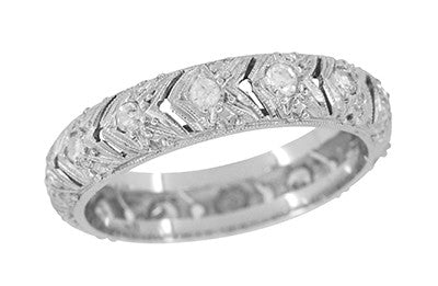 Art Deco Chevrons Filigree Vintage Diamond Wedding Band in Platinum - Size 7