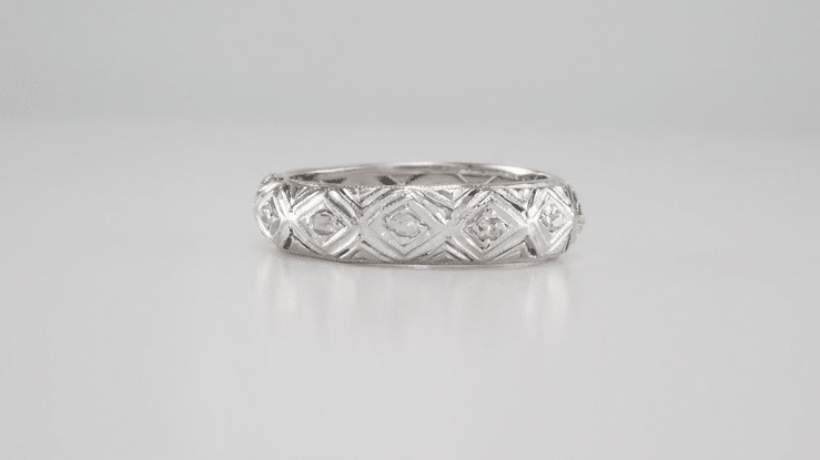 Brookfield Art Deco Antique Rose Cut Diamond Wedding Ring in Platinum - Size 6.5