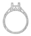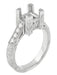 Flowers and Scrolls 3/4 Carat Princess Cut Diamond Art Deco Engagement Ring Mounting in 18 Karat White Gold