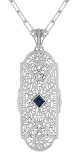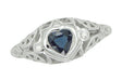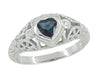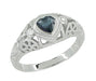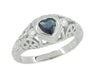 Art Deco Heart Sapphire and Diamond Filigree Ring in 14 Karat White Gold
