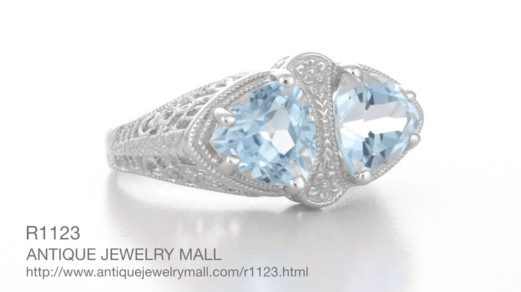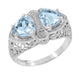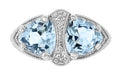 Art Deco Trillion Sky Blue Topaz Loving Duo Filigree Ring in Sterling Silver