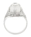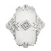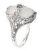 Art Deco Filigree Camphor Crystal Ring with Diamond Center in 14 Karat White Gold