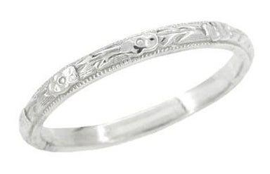 Art Deco Meadow Beauty Flowers Chased Antique Style Wedding Ring in White Gold - 2.5mm Wide