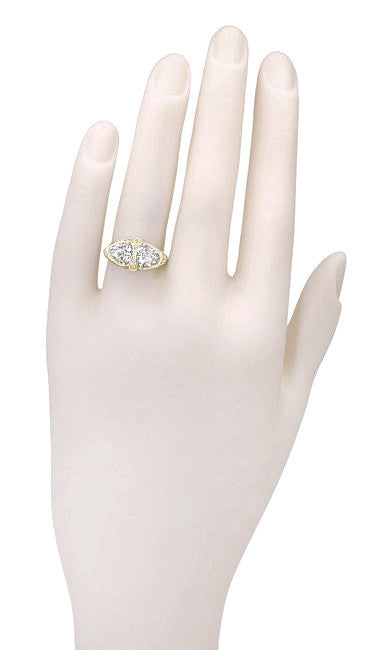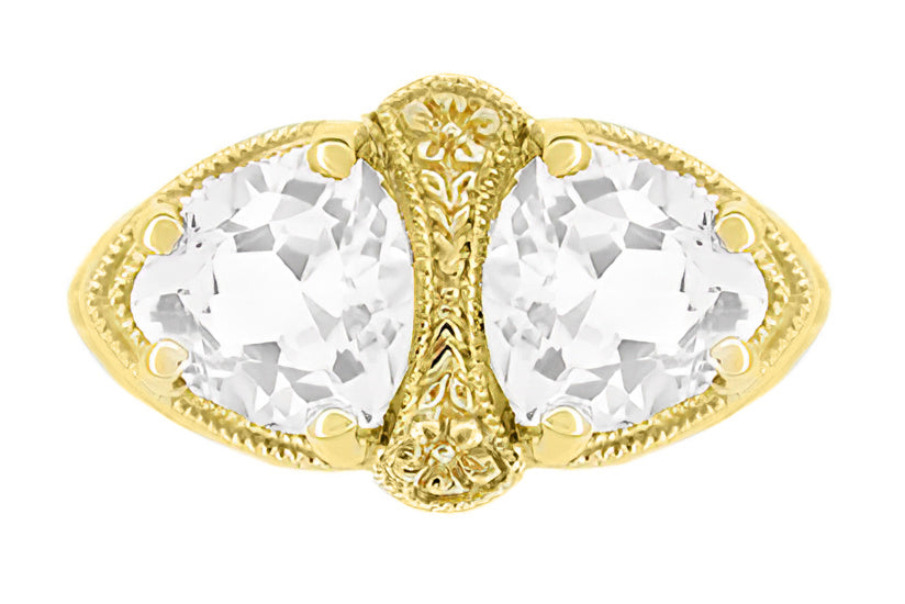 Yellow Gold Art Deco Filigree White Topaz Loving Duo Ring