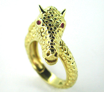 Giraffe Ring with Ruby Eyes in 14 Karat Gold