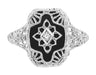 Art Deco 14 Karat White Gold Filigree Onyx and Diamond Ring