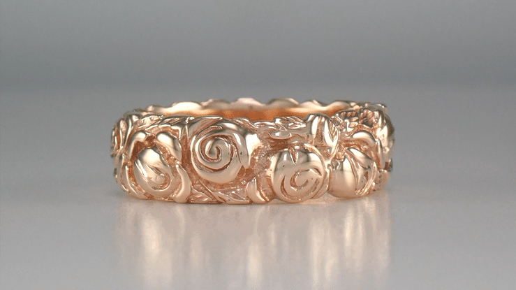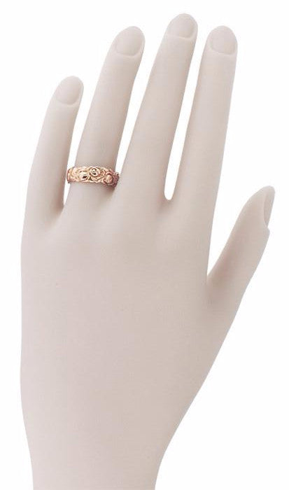 Retro Carved Roses 14 Karat Rose Gold Wedding Band - 6.3mm Wide