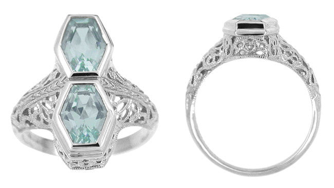 This gorgeous Art Nouveau filigree aquamarine ring in 14K white gold embraces the blue of a tropical sea in a large emerald cut aquamarine ( March ...
